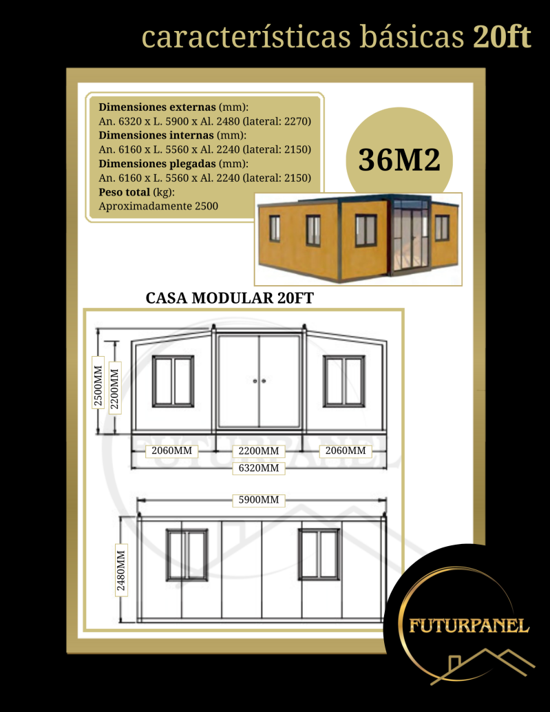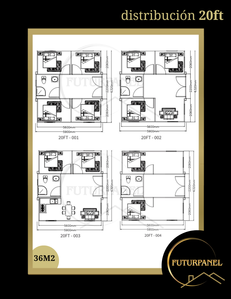 CARACTERISTICAS, DISTRIBUCIÓN Y CONFIGURACIÓN DE HABITACIONES PARA LAS CASAS: 20ft Mini, 20ft, 30ft Y 40ft